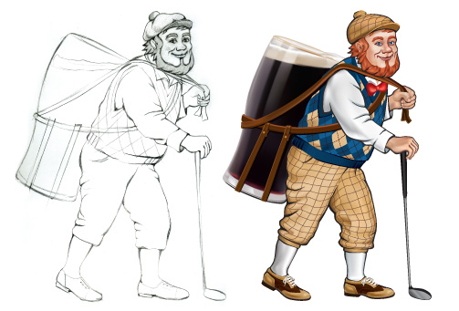 Illustration for "Black Pint" golf pub logo (for Corvision) - hand drawing and Illustrator CS3